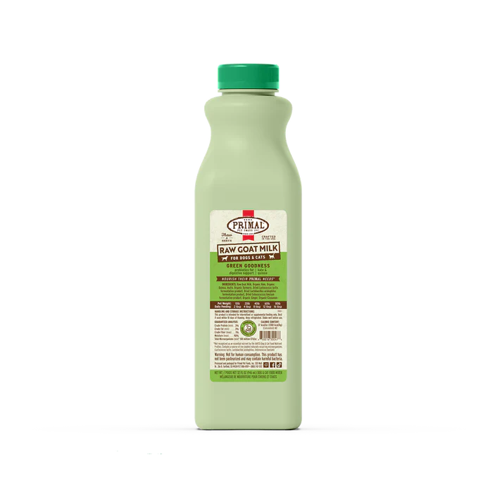 Ingredients: Raw Goat Milk, Organic Kale, Dried Lactobacillus lactis fermentation product, Dried Lactobacillus acidophilus fermentation product, Dried Enterococcus faecium fermentation product, Inulin, Organic Turmeric (color), Organic Quinoa, Organic Ginger, Organic Cinnamon