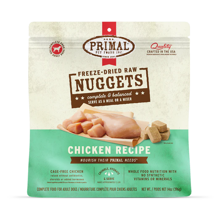 Ingredients: Chicken (with ground bone), Chicken Livers, Organic Carrots, Organic Squash, Organic Kale, Organic Apples, Organic Parsley, Organic Pumpkin Seeds, Organic Sunflower Seeds, Organic Broccoli, Organic Blueberries, Organic Cranberries, Organic Sunflower Oil, Dried Yeast, Montmorillonite Clay, Organic Apple Cider Vinegar, Cod Liver Oil, Fish Oil, Organic Coconut Oil, Organic Rosemary Extract, Vitamin E Supplement, Organic Ground Alfalfa, Dried Organic Kelp, Liquid Lactobacillus acidophilus fermentation product, Liquid Lactobacillus casei fermentation product, Liquid Lactobacillus reuteri fermentation product, Liquid Bifidobacterium animalis fermentation product, Taurine