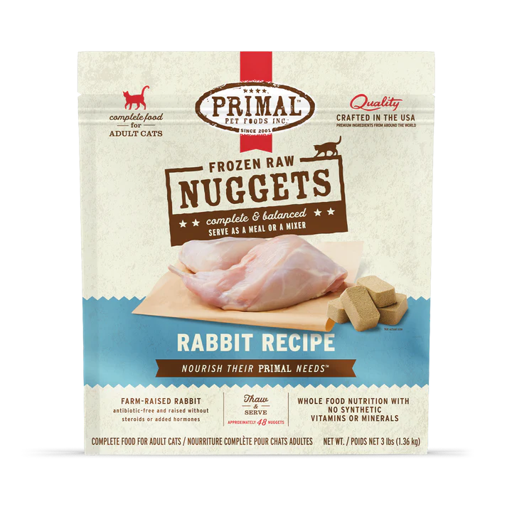 Ingredients: Rabbit (with ground bone), Egg, Organic Squash, Organic Carrots, Organic Kale, Organic Apples, Organic Sunflower Seeds, Organic Pumpkin Seeds, Organic Broccoli, Organic Blueberries, Organic Cranberries, Organic Parsley, Organic Apple Cider Vinegar, Cod Liver Oil, Dried Yeast, Fish Oil, Organic Coconut Oil, Montmorillonite Clay, Salt, Taurine, Vitamin E Supplement, Dried Organic Kelp, Organic Ground Alfalfa