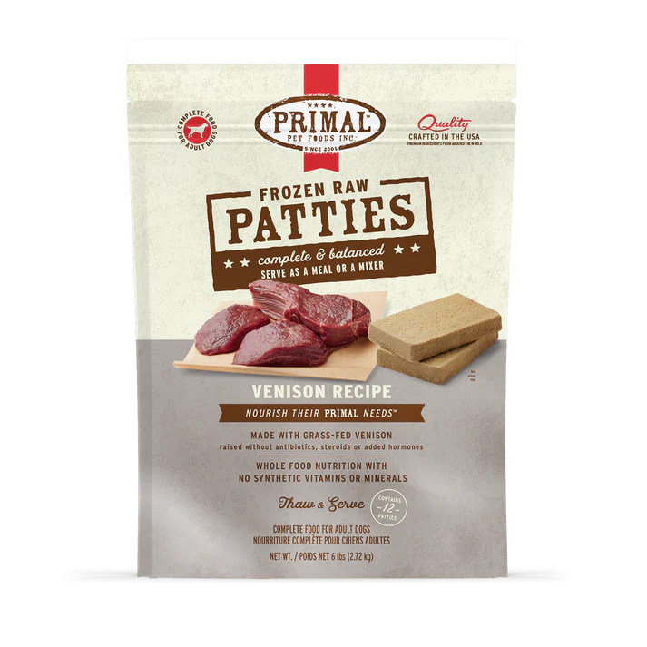Ingredients: Venison (with ground bone), Venison Livers, Organic Kale, Organic Squash, Organic Carrots, Organic Apples, Organic Parsley, Organic Sunflower Seeds, Organic Pumpkin Seeds, Organic Broccoli, Organic Blueberries, Organic Cranberries, Montmorillonite Clay, Organic Apple Cider Vinegar, Cod Liver Oil, Fish Oil, Organic Coconut Oil, Dried Yeast, Vitamin E Supplement, Organic Ground Alfalfa, Dried Organic Kelp, Taurine