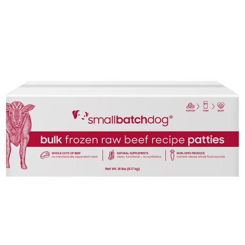 Ingredients: Beef, Ground Beef Bone, Beef Kidney, Beef Liver, Organic Carrots, Organic Sweet Potatoes, Organic Zucchini, Organic Broccoli, Organic Apple Cider Vinegar, Organic Kale, Organic Collards, Organic Blueberries, Organic Kelp, Organic Parsley, Cod Liver Oil, Organic Chia Seeds, Organic Wheatgrass, Organic Basil, Vitamin E Supplement