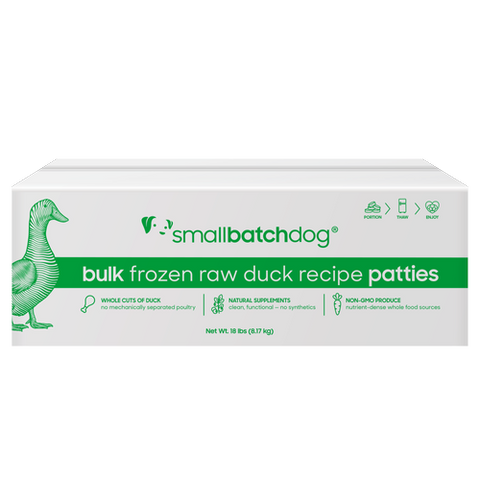 Ingredients: Duck (with ground bone), Duck Liver, Organic Butternut Squash, Organic Celery, Organic Green Beans, Organic Cauliflower, Duck Heart, Organic Bok Choy, Organic Dandelion Greens, Organic Apple Cider Vinegar, Organic Blueberries, Organic Kelp, Organic Cilantro, Organic Chia Seeds, Cod Liver Oil, Organic Wheatgrass, Vitamin E Supplement, Organic Oregano